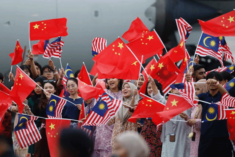 2025年4月15日,中国国家主席习近平乘专机抵达吉隆坡,应马来西亚最高元首易卜拉欣邀请,对马来西亚进行国事访问。图为欢迎人群。(中新社图片)