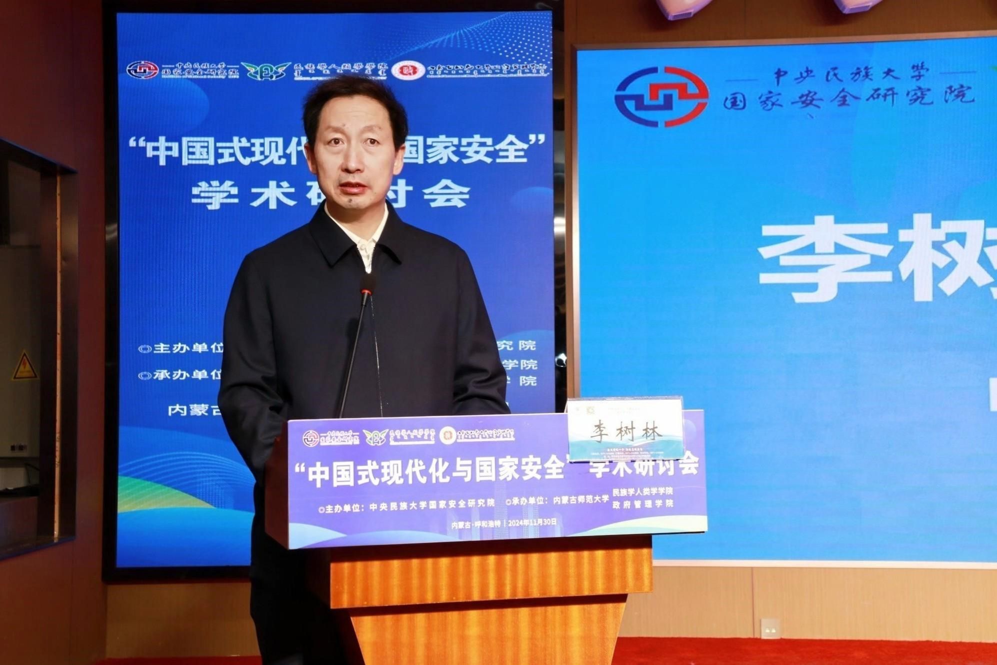 李树林教授在致辞中指出,教育是国之大计,党之大计。高校作为教育科技人才三大强国战略的交汇点,肩负着培养担当民族复兴大任人才的重要任务。深入践行总体国家安全观,统筹高质量发展和高水平安全是高校应有的责任和使命。内蒙古师范大学作为新中国成立后,党和国家在边疆民族地区最早建立的高等学校,是自治区重点大学和师范教育的领航者,在维护祖国北疆安全稳定、书写中国式现代化内蒙古教育新篇章中具有不可替代的作用。近年来,内蒙古师范大学立足新发展阶段,贯彻新发展理念,坚持发展和安全一体两翼双轮驱动,以高水平安全厚植高质量发展根基,为高质量服务国家安全战略,办好总书记为内蒙古量身定制的两件大事贡献了师大智慧和师大力量。
