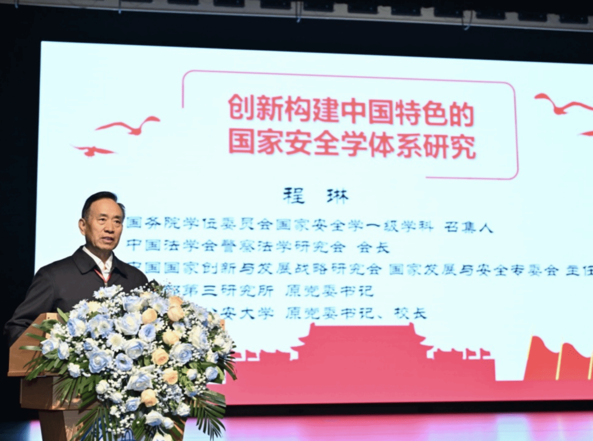 国家安全学学科评议组召集人、中国人民公安大学原党委书记、校长程琳作主旨报告《创新构建中国特色的国家安全学体系研究》